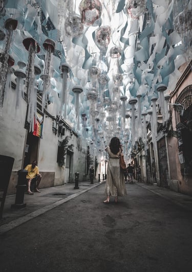 20 Agosto - Fotografiamos el concurso anual de las famosas calles engalanadas del barrio de Gracia.